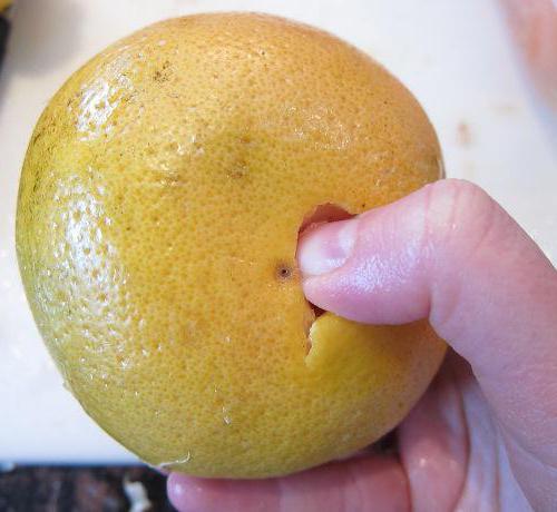 Но есть несколько способов отделить качественный плод от «некондита». Шкурка у хорошего грейпфрута должна быть блестящей, чистой, равномерного окраса и без повреждений. Выбирайте плод круглой формы. Главным критерием хорошего качества грейпфрута является правильное соотношение веса и размера. Возьмите в руки несколько одинаковых на вид плодов и сравните. Выбирайте самый тяжелый цитрус. Он и окажется наиболее сочным и вкусным. Владельцы цитрусовых рощ опрыскивают плоды от вредителей. Торговцы обрабатывают фрукты ради сохранения «товарного вида». К счастью, цитрусовые имеют грубую кожуру, которую можно вымыть горячей водой с мылом.