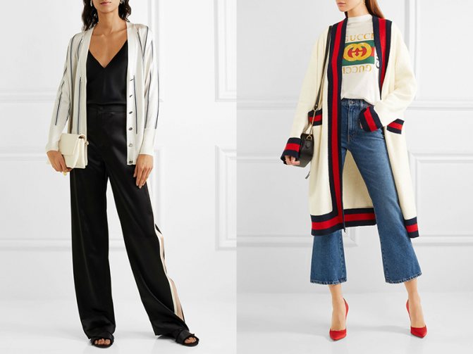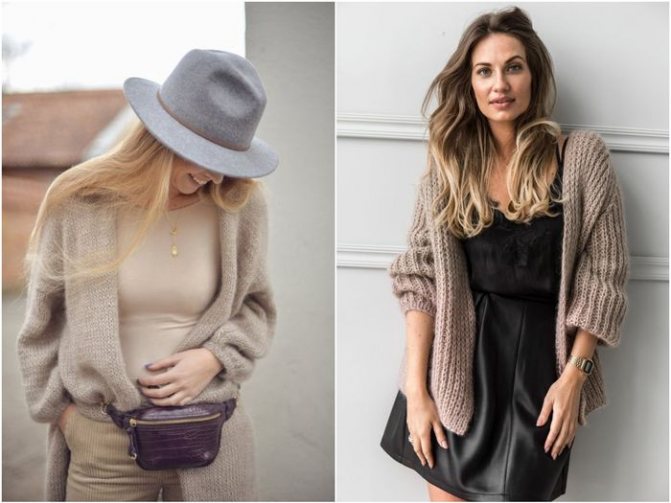 - тонкий кардиган не должен плотно облегать фигуру — лучше взять оверсайз;