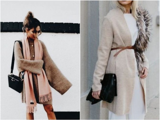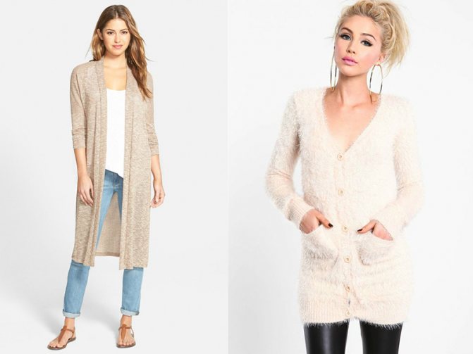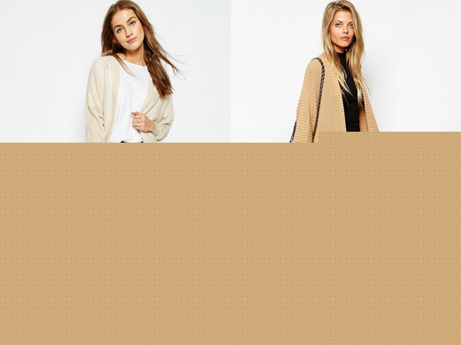 Главной особенностью модного изделия является свободный покрой и в меру облегающий силуэт. Встречаются длинные, короткие и удлиненные модели, каждая из которых подходит определенному типу женской фигуры. Молодежь предпочитает короткие образцы, а длинный бежевый кардиган выбирают женщины, желающие слегка откорректировать фигуру. Длина позволяет скрыть полные бедра и животик, а бежевый цвет добавляет нежность и романтичность женскому образу. Считается, что беж – спокойный оттенок, ассоциирующийся с миром, теплом и любовью. Поэтому в бежевых вещах дамы будут выглядеть миловидно, чувственно и изысканно.