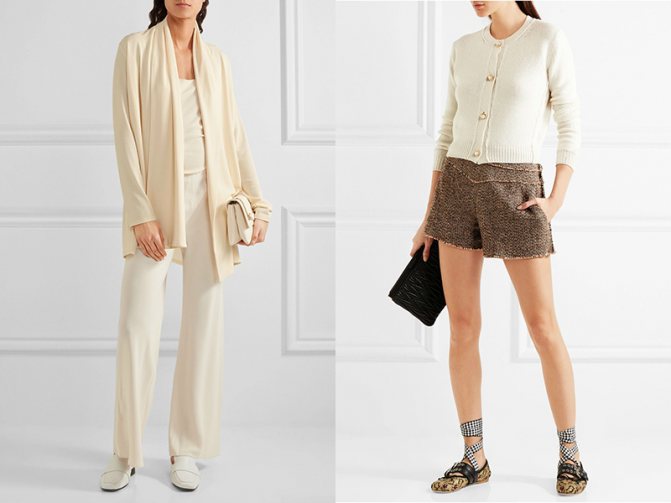 Кардиганы дают большие возможности для создания фантастических ультрамодных луков. Это универсальные вещи, отлично комбинирующиеся с короткими юбками, шортами, платьями. С чем можно сочетать бежевый кардиган? Подойдут изделия разного стилевого направления. Можно создать спортивный образ, применяя леггинсы, бриджи, капри и кардиган до середины бедра. Уличный стиль позволят создать шорты, джинсы, мини-юбка, топ и рубашка. Элегантность добавит удлиненное облегающее платье, сарафан и длинный вязаный кардиган.