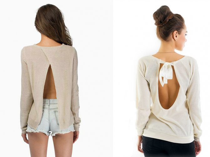 Кофта с открытой спиной на первый взгляд кажется элементом повседневного наряда, но она отлично сочетается с костюмами, вечерними платьями. Изделие называют универсальным, потому что оно подходит для любого мероприятия, начиная со встречи с приятелями из университета, заканчивая официальной вечеринкой в честь юбилея сотрудника.