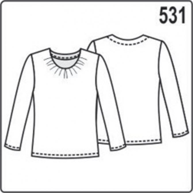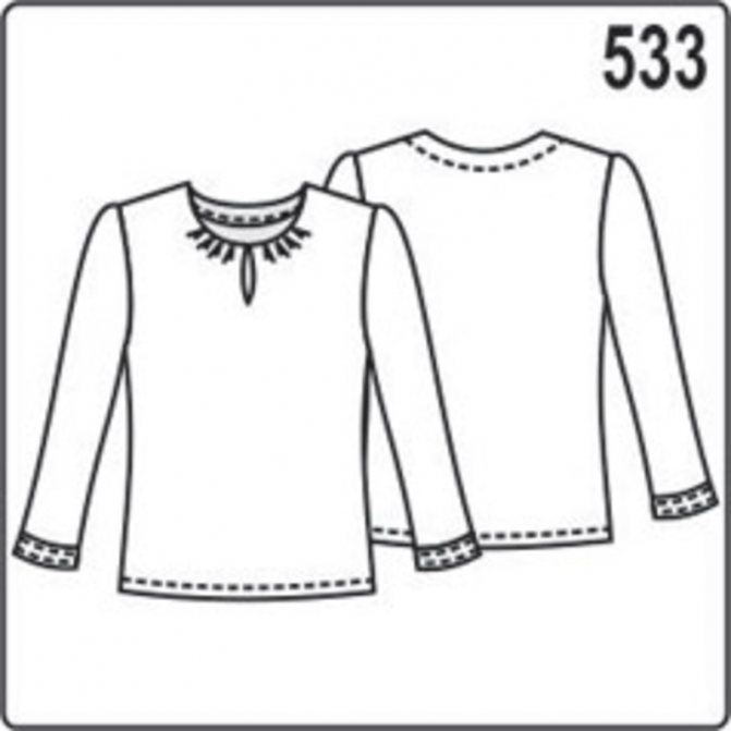 Схема блузки с длинным рукавом, сборкой