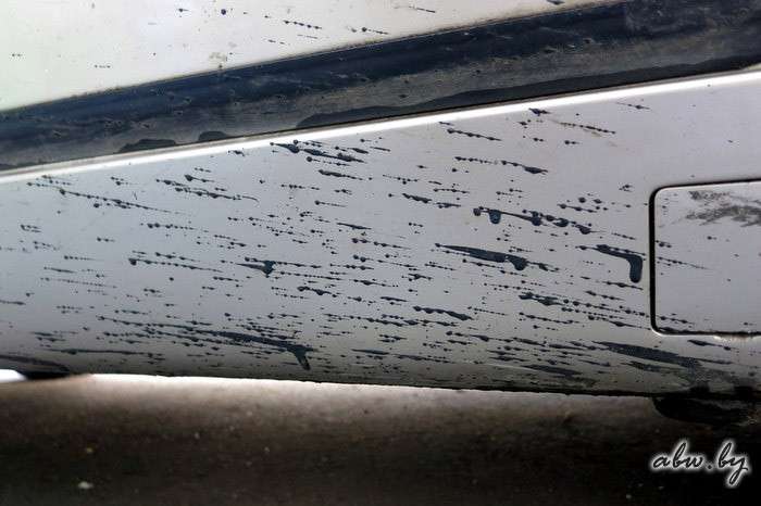 Битумные пятна – это следы от битума, который попадает на кузов от колёс с дорожного полотна и прилипает к нему. Если пятна вовремя не убрать, то могут быть серьёзные проблемы. А именно – может повредиться лак, который покрывает краску. Это реально и абсолютно точно. Битум входит в химическое взаимодействие с лаком и со временем лак тускнеет и желтеет.
