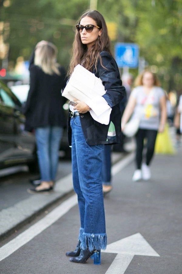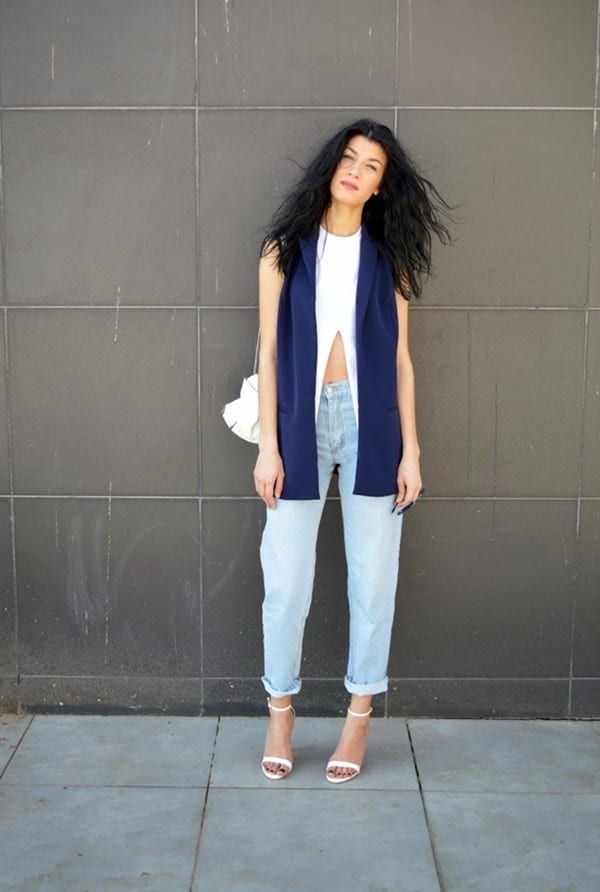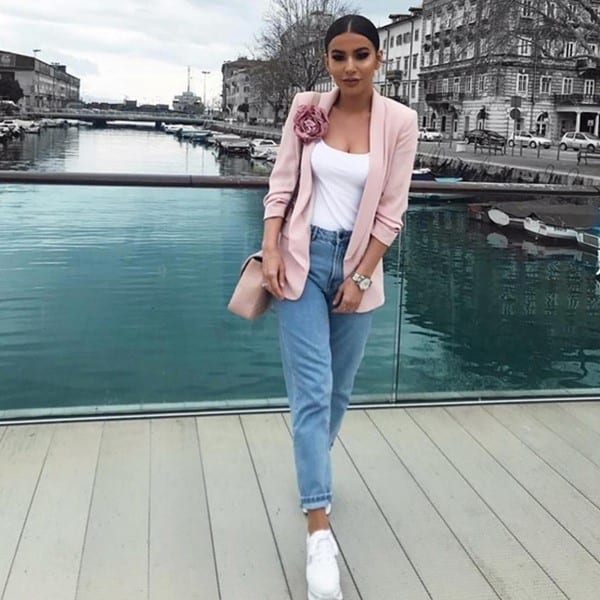 Комбинация бойфрендов и заправленного в них пиджака смотрится очень стильно и оригинально. Этот тренд пока еще не очень распространен, однако начинает набирать популярность среди молодых блогеров.