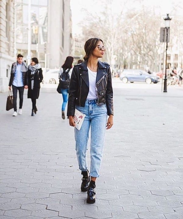 Момы просто незаменимы при создании повседневного аутфита. Дополните их обычным свитшотом или укороченным пуловером, и вы получите стильный и ультрамодный образ. Если верх длинный, то заправьте его в джинсы, ведь в случае с «мамиными» джинсами кофта не должна прикрывать область талии.
