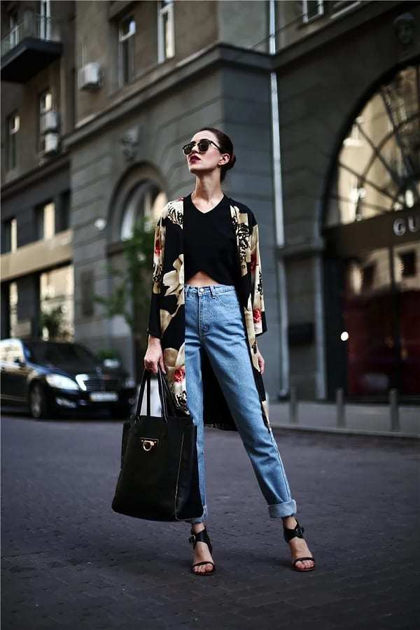 Топы, майки и футболки станут отличным дополнением к модели mom в теплое время года. Вечером защититься от прохлады можно с помощью жакета, кардигана или косухи.