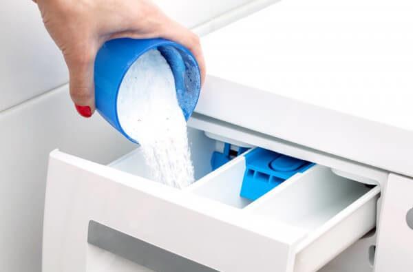Если в составе жидкого порошка содержатся отбеливатели или пятновыводители, его нельзя наливать сразу в барабан.