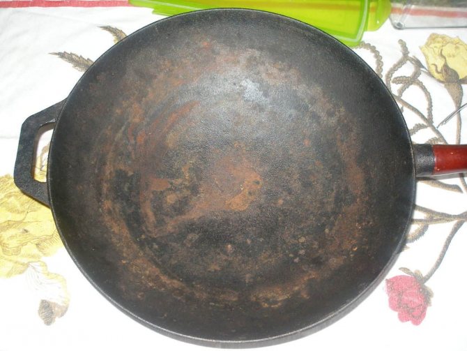Иногда процедуру прокаливания с маслом люди называют «воронением», но это неправильно. В этом случае не происходит образование оксида железа, а появляется гладкая пленка из пригоревшего растительного масла. Она никак не отразится на вкусе и аромате блюда и нужна для того, чтобы во время приготовления продукты не пригорали.