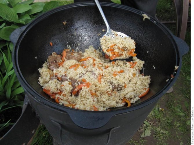 Важно помнить, что алюминиевые казаны никогда не прокаливают. Алюминий при сильном нагреве деформируется, прогорает. Посуду достаточно хорошо смазать перед приготовлением пищи.