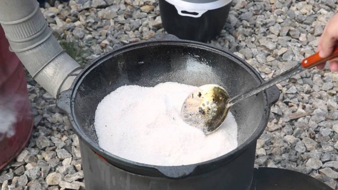 Соль, которой прокаливали казан, нельзя использовать в пищу. Она впитала в себя много технического масла.