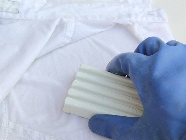 В их составе есть вещества, проникающие в структуру материалов и растворяющие загрязнения. Выбранное средство следует нанести на губку или мягкую ткань, после чего обрабатываются проблемные зоны: активно их потрите, при необходимости оставьте состав на некоторое время, а затем прополощите изделие и постирайте привычным способом вручную или в стиральной машине. Хозяйственное мыло. Щелочь, содержащаяся в нем, способна выводить даже въевшиеся и застарелые загрязнения, но также она может повреждать деликатные материалы, поэтому с таким средством стоит быть аккуратнее. Чтобы убрать пятно, можно просто тщательно намылить его мылом, подождать двадцать-тридцать минут и начать полоскание. А если загрязнения сильные и многочисленные, то можно действовать иначе: натрите примерно 50 г мыла на терке и образовавшуюся в результате стружку растворите в стакане горячей воды. Этот концентрированный раствор используйте для обработки загрязнений и добавьте в тазик или стиральную машину при стирке.
