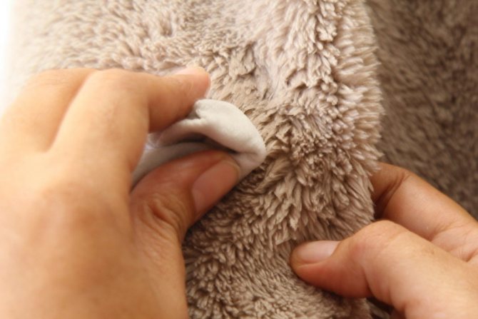 - Плавными массажными движениями вотрите крахмал в ворс изделия. Старайтесь сильно не заламывать и не вминать мех.