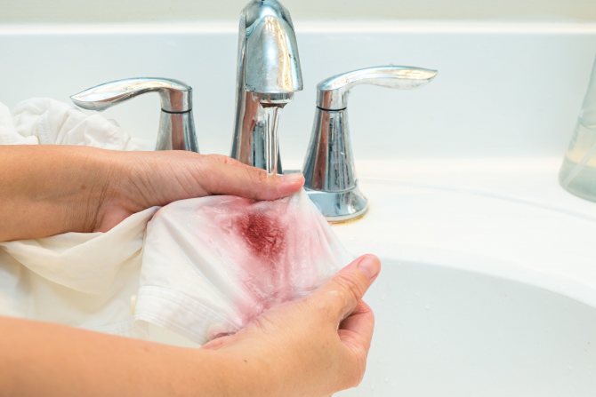 Свежие пятна крови достаточно легко выводятся обычной стиркой вещи в холодной воде. Менять при этом воду можно 2–3 раза. Противопоказано замачивать кровяные образования в горячей воде, так как в ней кровь имеет свойство «сворачиваться». Для застарелых пятен, которые не удаляются путем обычной стирки, можно попробовать следующие методы: