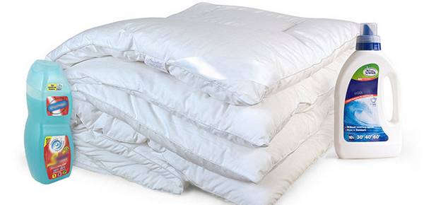 Для автоматической стирки стеганого изделия применяют жидкие гелеобразные составы, предназначенные для обработки пуховиков. Консистенция таких средств максимально щадящая и не навредит целостности шерстяного волокна.