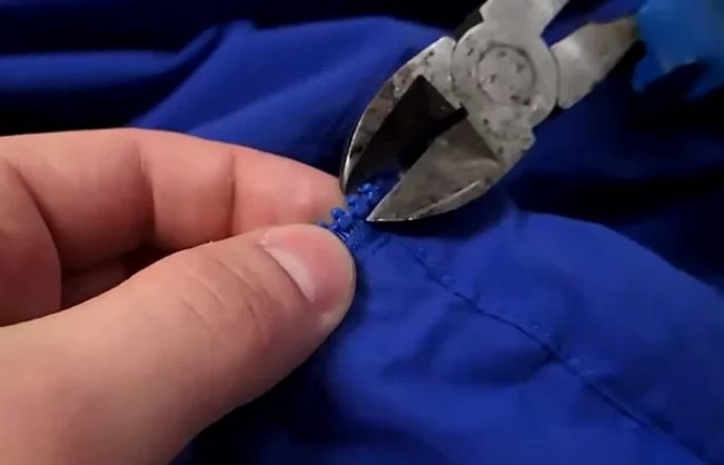 Первой задачей является удаление зубцов со старой молнии. На пластмассовой обрезаем аккуратно кусачками, не повреждая ткань, на которой закреплены зубцы.