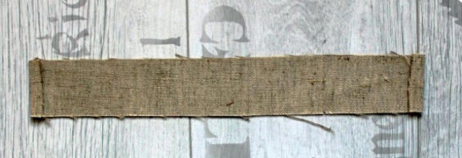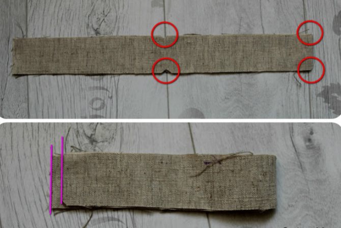 Должно быть четыре штуки, которые выкраиваются одной деталью и укрепляются флизелином. После этого разрезаются. В данном примере — бортовка из мешковины, флизелин можно не использовать.