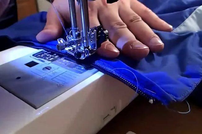- Заключительный этап — пришивание застежки в виде молнии к основному полотну.