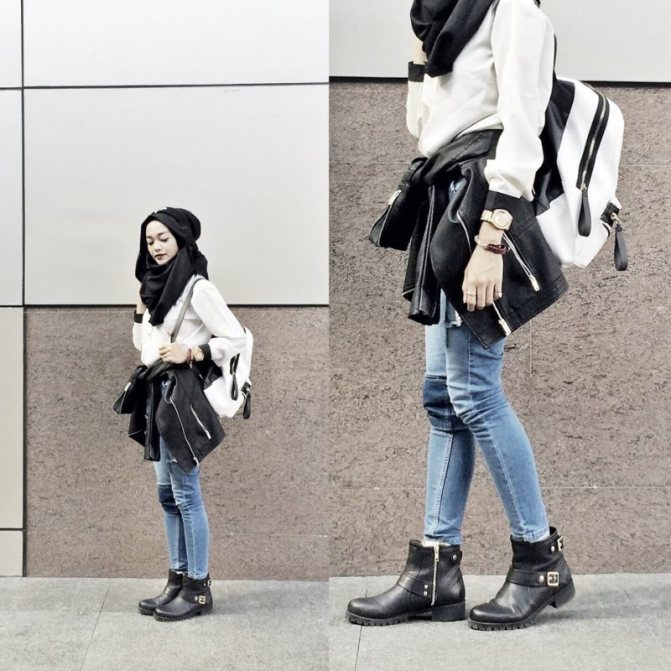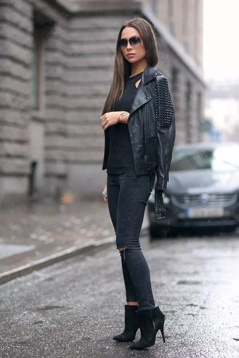 - Если вы являетесь обладательницей рваных или декорированных джинсов, то подберите под нее простые ботинки. В противном случае образ будет слишком броским.