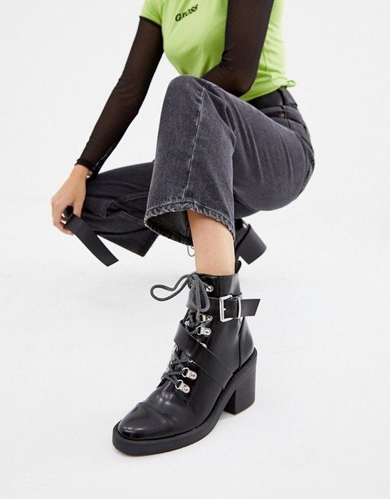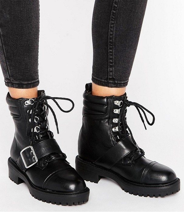 Байкерские ботинки — отличаются грубым дизайном, широкой голенью и каблуком средней высоты, украшенные металлическими заклепками.