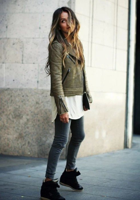 Подходят для создания легкого, молодежного образа либо рок-стиля, можно сочетать с одеждой мини (юбки, шорты, платья), интересно будут смотреться в паре с вязаными гольфами до колен, паркой, а также с кожаной курткой — косухой и узкими джинсами.