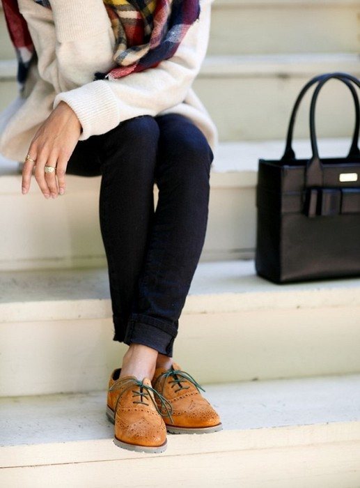 - оксфорды, особенно если они будут на контрастной подошве;