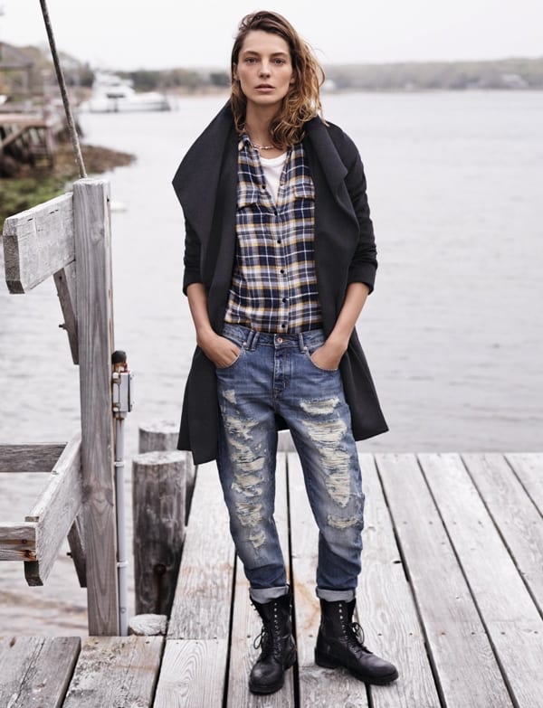Более грубая модель предполагает брутальный, в некоторой степени агрессивный образ либо армейский или кантри. Здесь уместны джинсы скинни, бойфренды, шорты и юбки (как макси, так и мини) из денима, клетчатые рубашки, кожаные куртки.