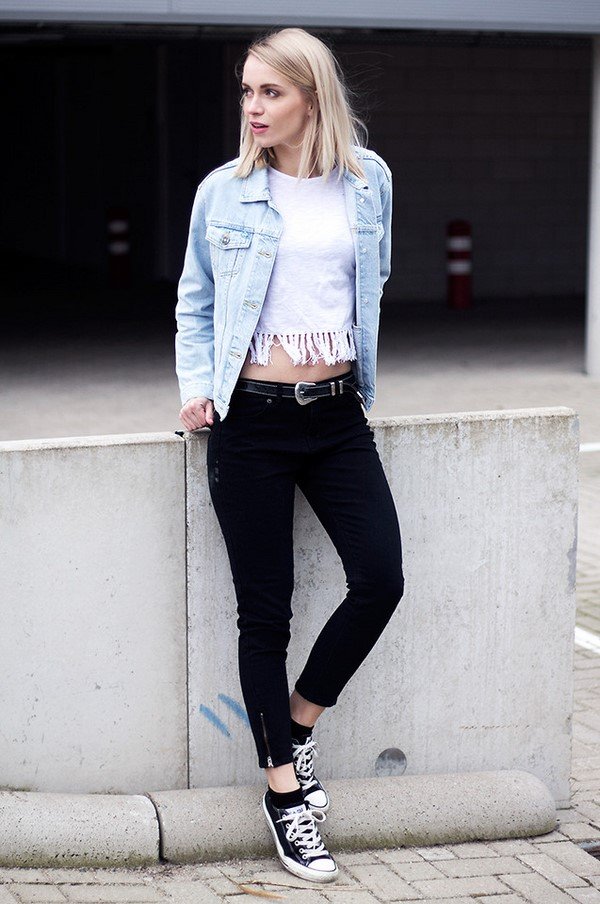 С кроссовками плохо смотрятся расклешенные джинсы. Зато скинни и обрезанные модели будут идеальным вариантом. Еще одно важное условие – это соответствие ситуации. Образ с кроссовками и джинсами далеко не всегда смотрится уместно.