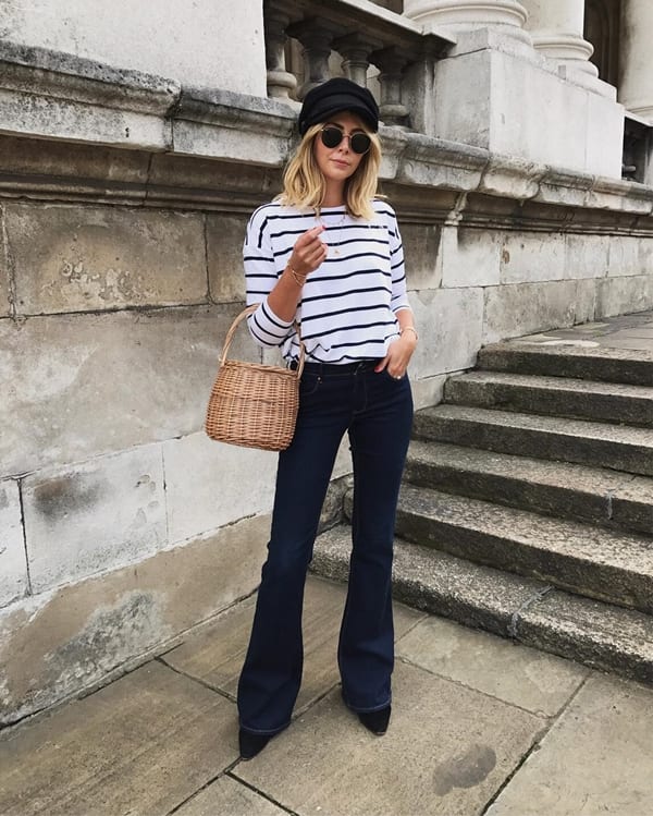 В теплую погоду можно положиться на черные босоножки на каблуке или балетки с острым носом. Идеальный верх в таком случае – это жакет.