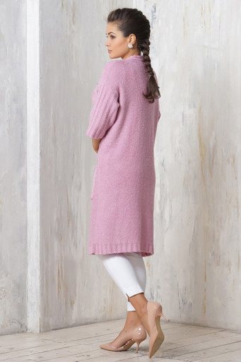 Вам потребуется: пряжа (90% натуральной шерсти. 10% кашемира; 160 г)-400 (450) 500 г бледно-розовой; спицы № 3 и 4; круговые спицы № 4.