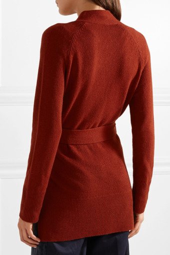 Сочетание разных ажурных структур, широкая резинка на талии и узкие рукава — великолепный жакет с запахом из элитной пряжи с добавлением кашемира удачно подчеркнет фигуру.