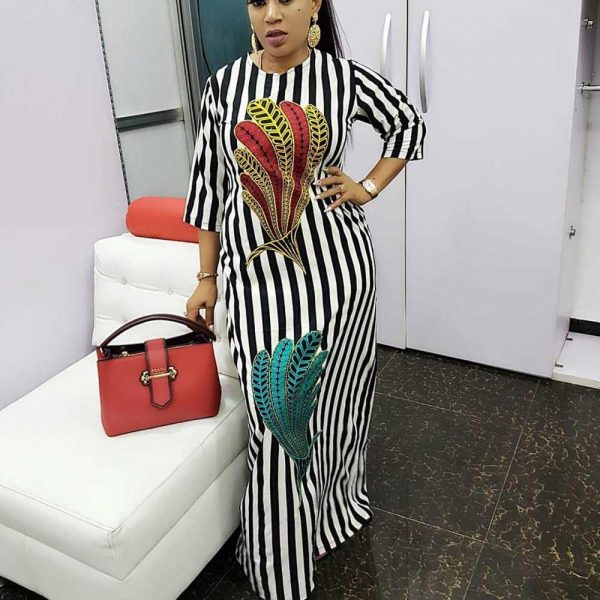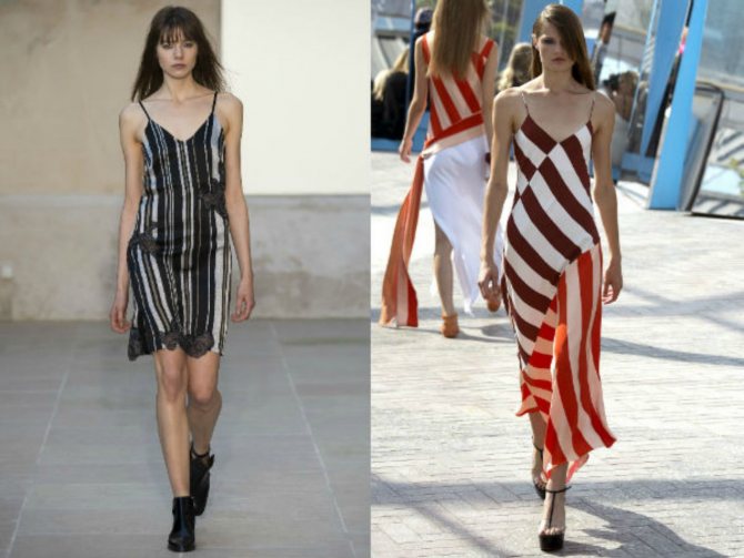 - В полоску. Линии вернули утраченные позиции и вновь появились на модных подиумах. В 2020 г. в тренде будет не только классическое сочетание черное-белое, разрешено использовать любые цвета. Уникальности образу добавят полоски, которые располагаются под разным углом, создавая неповторимый узор на платье. Вертикальные линии удлиняют силуэт и визуально уменьшают объем талии.