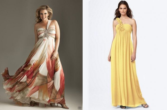 Безусловно, современные прототипы сильно разнятся от своих предшественников, но основной идеи дизайнеры все же придерживаются: подобные предметы гардероба отличаются свободным кроем, часто завышенной линией талии, наличием драпировок, складочек, воланов, а также легкими воздушными материями.