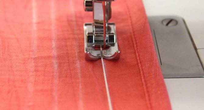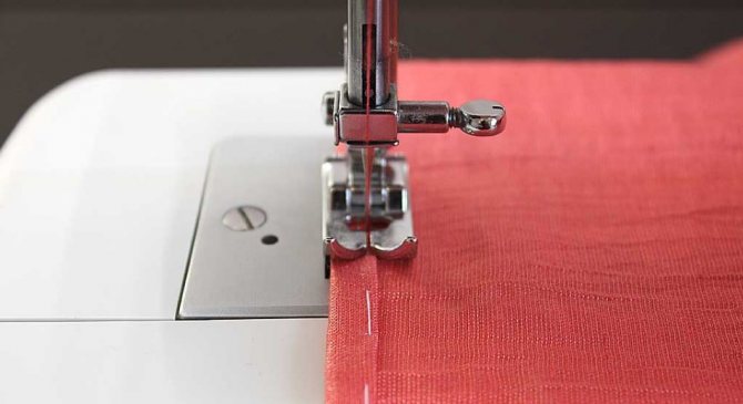 Подгибаем нижний срез детали на 7 мм, прокладываем машинную строчку в край.