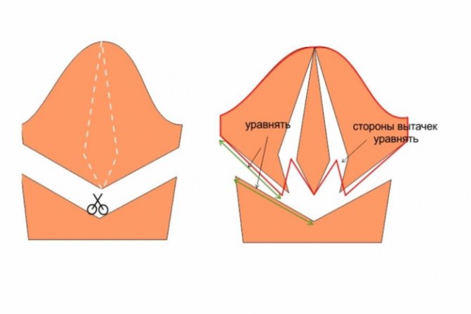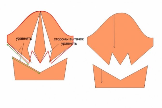 Сборку складок в данном случае следует осуществлять по нижнему срезу детали.