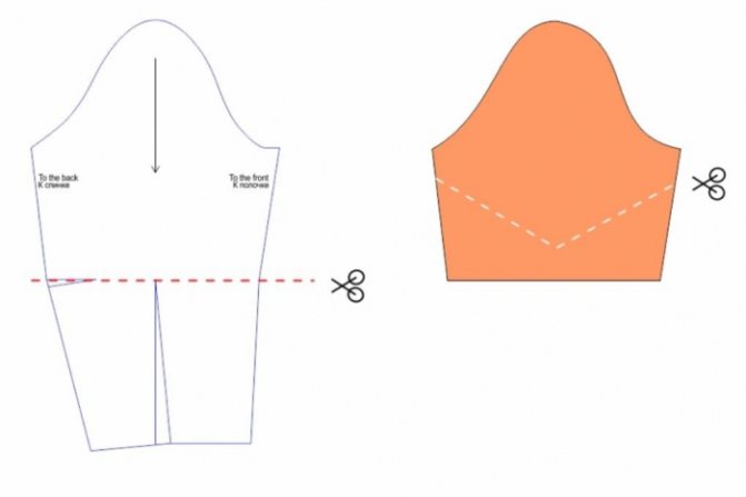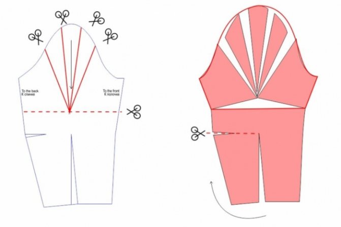 - разрежьте и раздвиньте часть выкройки
