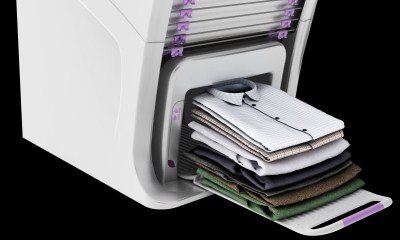 Именно такое название получила новая разработка. Это оборудование не только гладит и отпаривает одежду, а также складывает её в ровные стопки и освежает, сбрызгивая парфюмом.