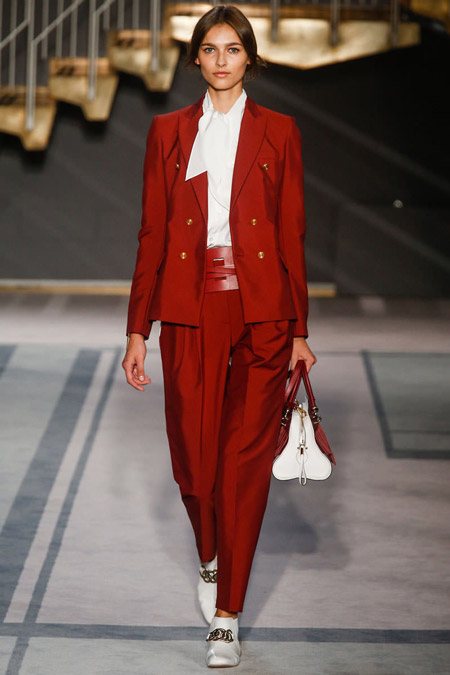5 вариант. Белая блузка + красный брючный костюм