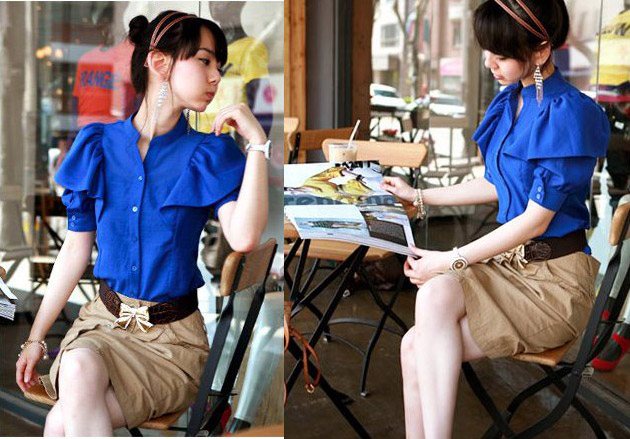 Если вам необходимо создать офисный образ. То тут все достаточно просто. Синяя блузка плюс черная юбка-карандаш, и образ готов! При этом, благодаря цвету верха он не будет выглядеть скучно. Но конечно, образ можно разнообразить. К примеру, юбка может быть непросто черной, а с цветными вставками, а на ножки можно надеть классические лодочки. В качестве аксессуаров можно использовать цепочку с крупными звеньями и сумочку песочного, красного или того же синего цвета.