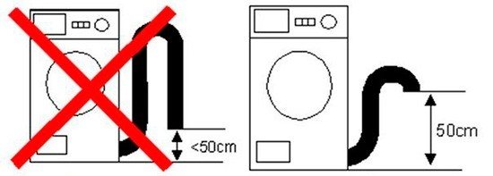 Если установлена новая стиральная машина или же вы переместили старую на другое место, а, следовательно, и подключили по-новому, то вполне вероятно, что причина неполадок именно в некорректном подсоединении шланга слива воды.
