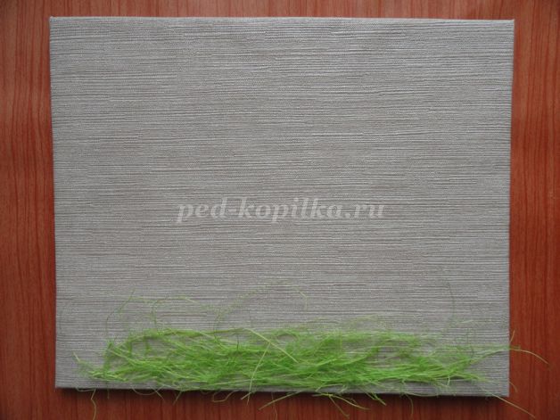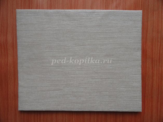 Готовим основу для панно. Для этого обклеиваем плотный картон обоями (можно использовать цветную бумагу).