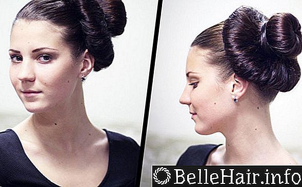 - Из первой пряди, которая находится ближе к лицу, делаем объемный шар вокруг резинки, скрепляющей наши волосы. Для придания объема волосы нужно распушить и сбрызнуть лаком.
