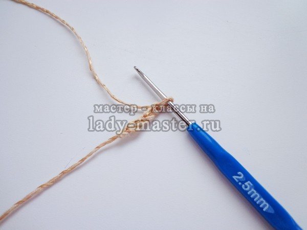 - Связать цепочку из 6 возд. петель.