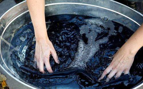 - Если краски в воде стало меньше, прополоскать под проточной водой;