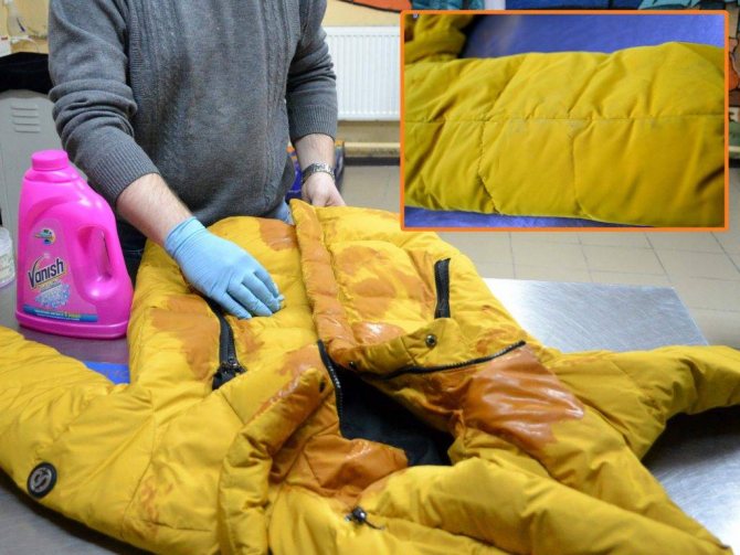 Жирное пятно с пуховика можно вывести не только народными средствами, но и профессиональными препаратами.