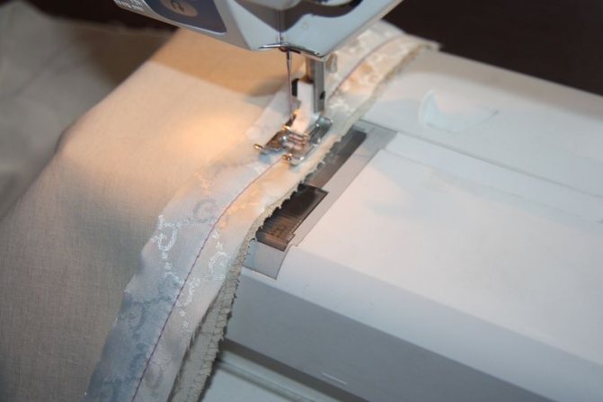 Сначала производят прошивку по краю вещи, на лицевой стороне. После изделие выворачивают, проутюживают и прострачивают верхнюю часть ленты. Оверлоком чаще всего не обрабатывают. Легкие ткани, которым подойдет открытая обработка: