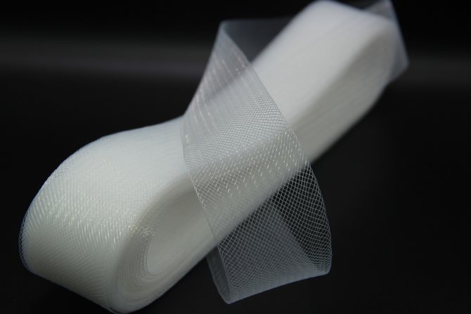 - Ленточный регилин — сеть, сплетенная из волокон. Ее используют, когда хотят создать юбке легкие волны.