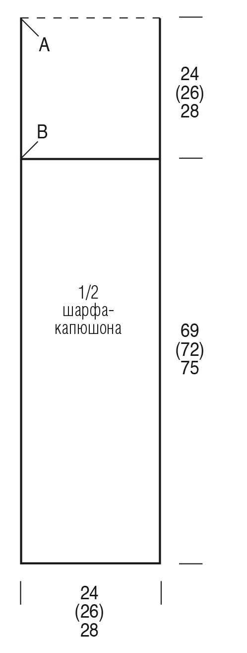 - После этого необходимо сшить шарф капюшон от пункта А схемы, до пункта В.