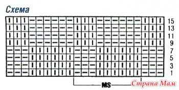 Набрать 80 петель (или количество, кратное 4). Начать вязать по схеме: