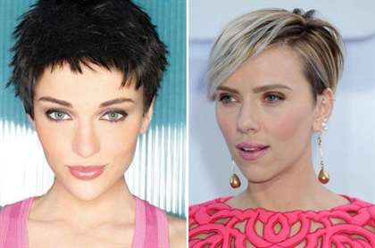 Как видим, обладательницы личика треугольной формы могут подобрать себе различные варианты как ультракоротких, так и длинных стрижек.