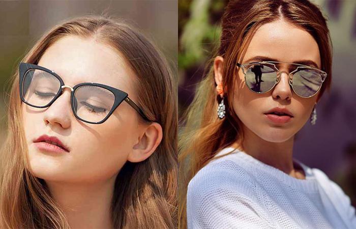 Особое внимание уделяют подбору очков. Рекомендуются малозаметные оправы, можно добавить акцент в нижней части. Осторожнее относятся к вариациям с расширением по бокам. Скругленные линзы подходят к треугольному личику, прямоугольные — сердцевидному. Это правило используют как при выборе стандартных очков, так и солнцезащитных.